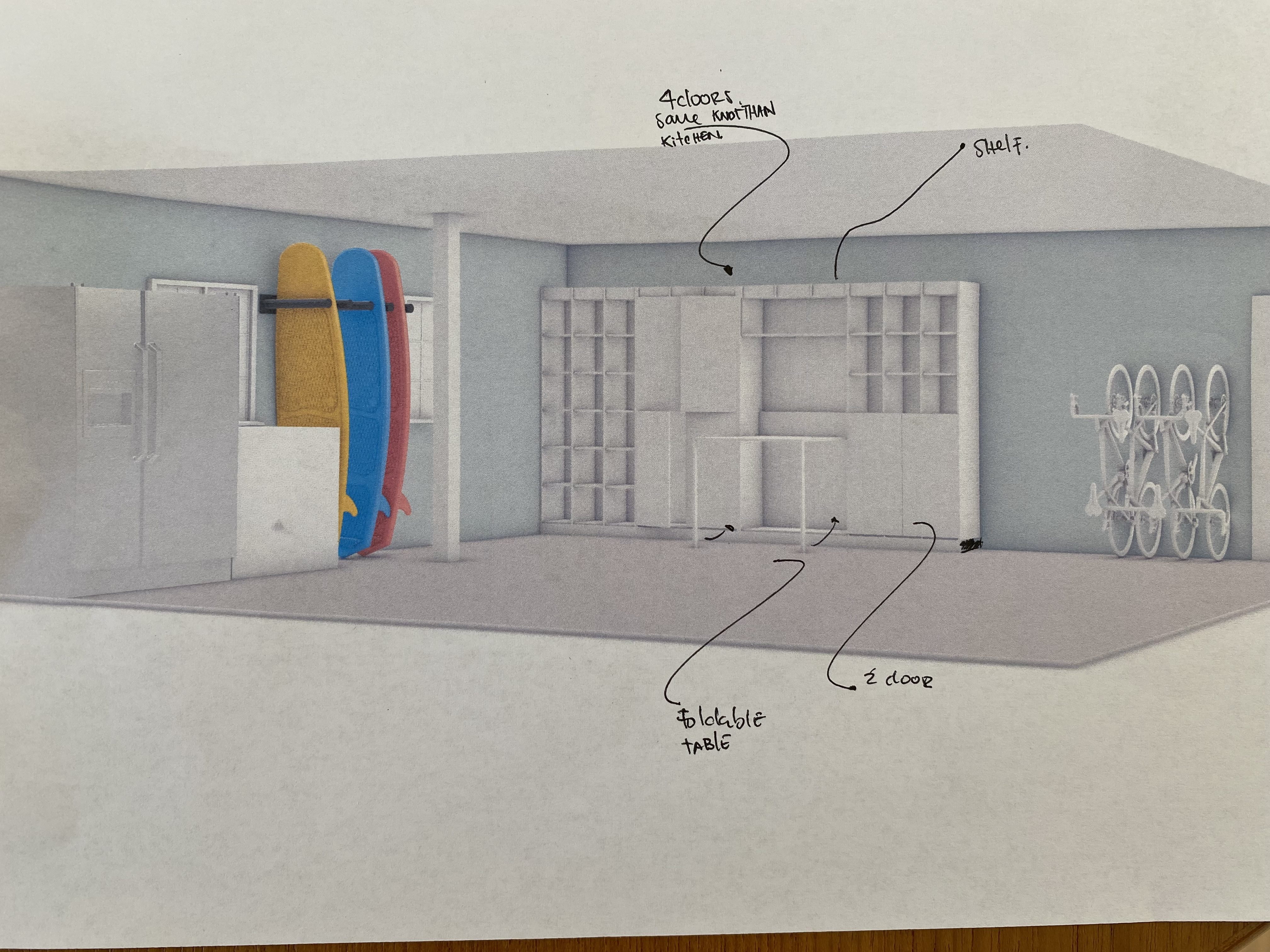 We had remodeled the main house a year before, but the garage was a forgotten space at the Ohana, filled with storage, laundry, car changing station, surf gear, and more. It was a multi-purpose area that had become a mess, and the client couldn’t even get in.
